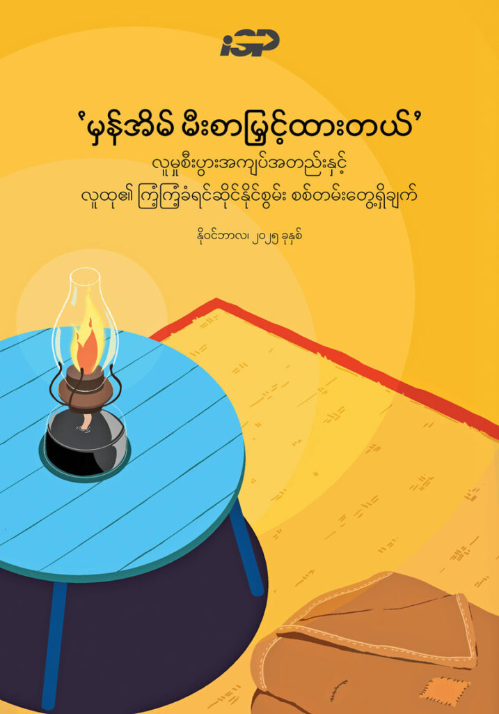 ISP ကပြင်ရပ်ဝန်းဟာ လွတ်လပ်စွာ ဖိတ်ခေါ်တဲ့ ရပ်ဝန်းတခု၊ ဆုံစည်း ဆွေးနွေးဖလှယ်စရာ ဌာနေတခုပါပဲ။ တိုင်းရေးပြည်ရေး နိုင်ငံရေးတော့ စိတ်ဝင်စားတယ်၊ ဆိုရှယ်မီဒီယာက အချက်အလက်တွေကို မယုံတာ များပြီ၊ စိတ်ပျက်နေပြီဆိုရင် ISP ကပြင်ရပ်ဝန်းကို ဝင်ရောက်ပြီး သိချင်တာ၊ လေ့လာချင်တာတွေကို လာပြောလှည့်ပါ။ ယဉ်ကျေးရင့်ကျက်တဲ့ သဘောထား ကွဲလွဲမှု၊ အချေအတင် ဆွေးနွေးမှုတွေမှာ ဝင်ပါလှည့်ပါလို့ ဖိတ်ခေါ်ပါတယ်။